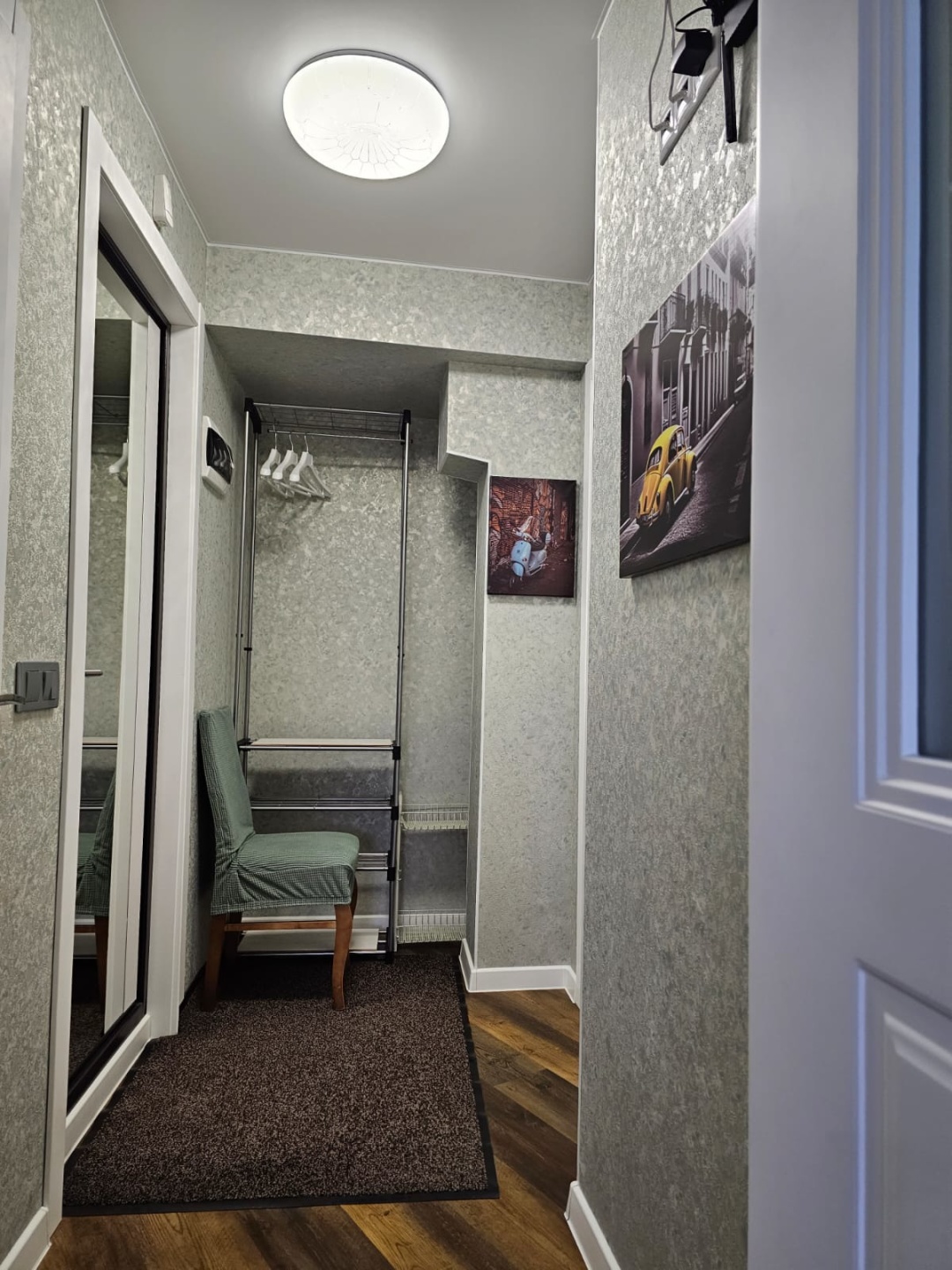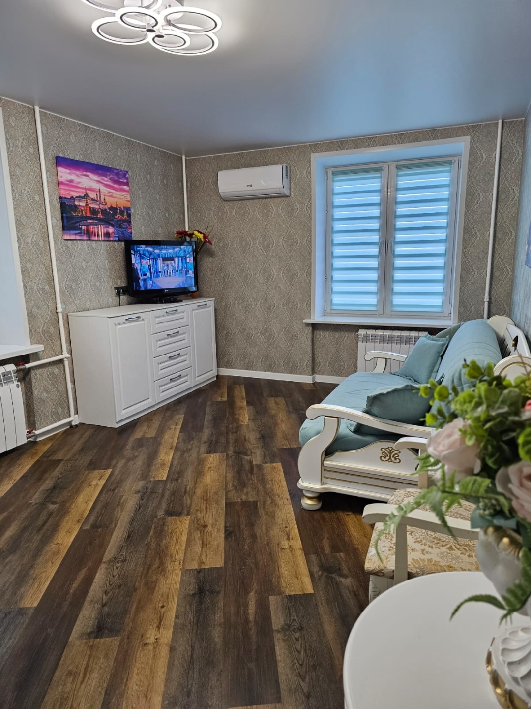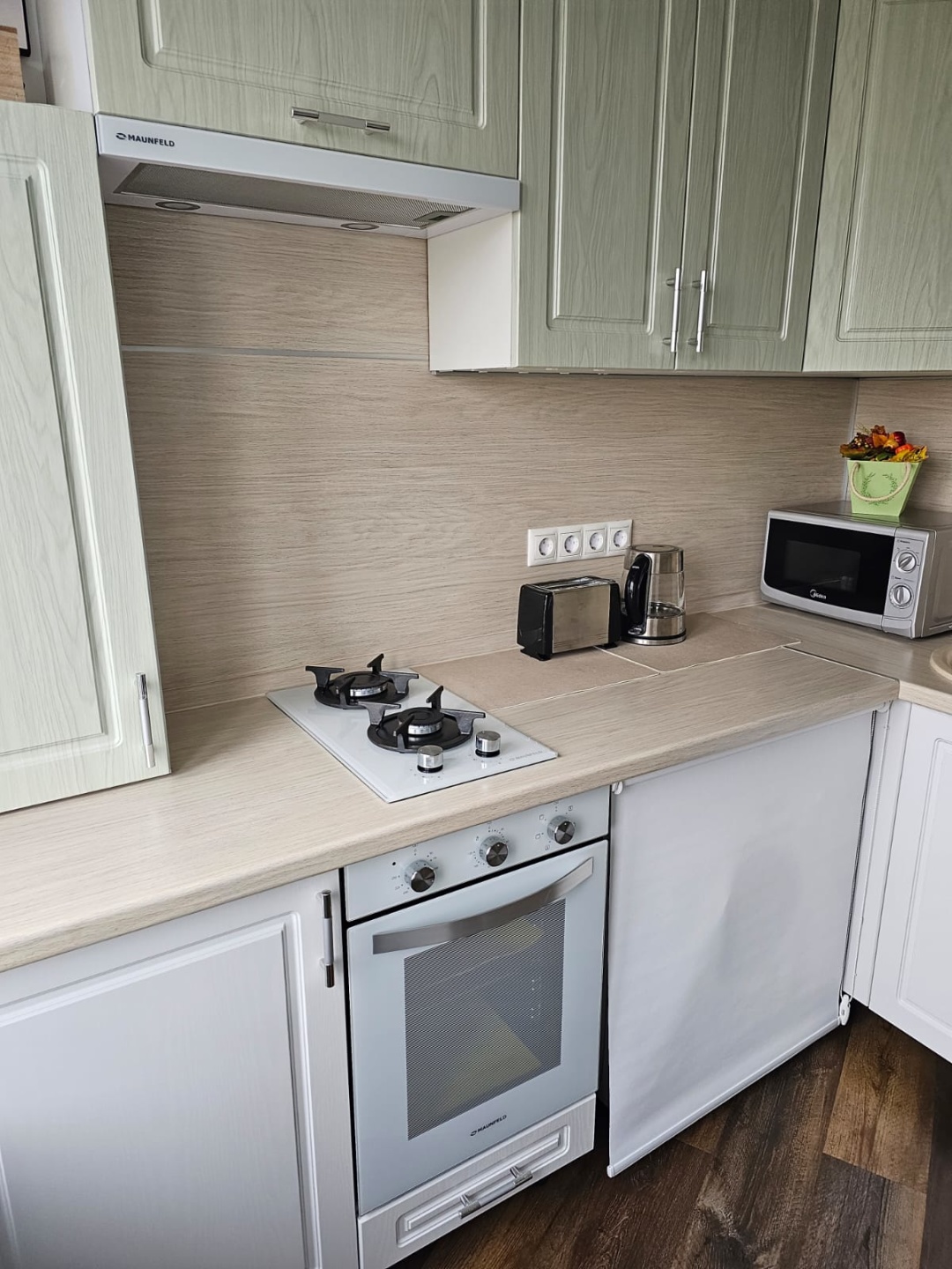 В квартире полностью капитальный ремонт с заменой всех коммуникаций, к каждой мокрой точке своя подводка. Выравнены стены, стяжка пола, дверные проёмы из новых бетонных блоков. Электропроводка медная . Много электроточек, электроавтоматы. Кухонная мебель и техника на заказ под габариты кухни. Холодильник, электродуховой шкаф, вытяжка фирмы maunfeld. Стиралка candy. Всё остаётся. В комнате мебель тоже на заказ под габариты комнаты( чуть уже, чем стандартное. ). Комнатная мебель тоже остается.