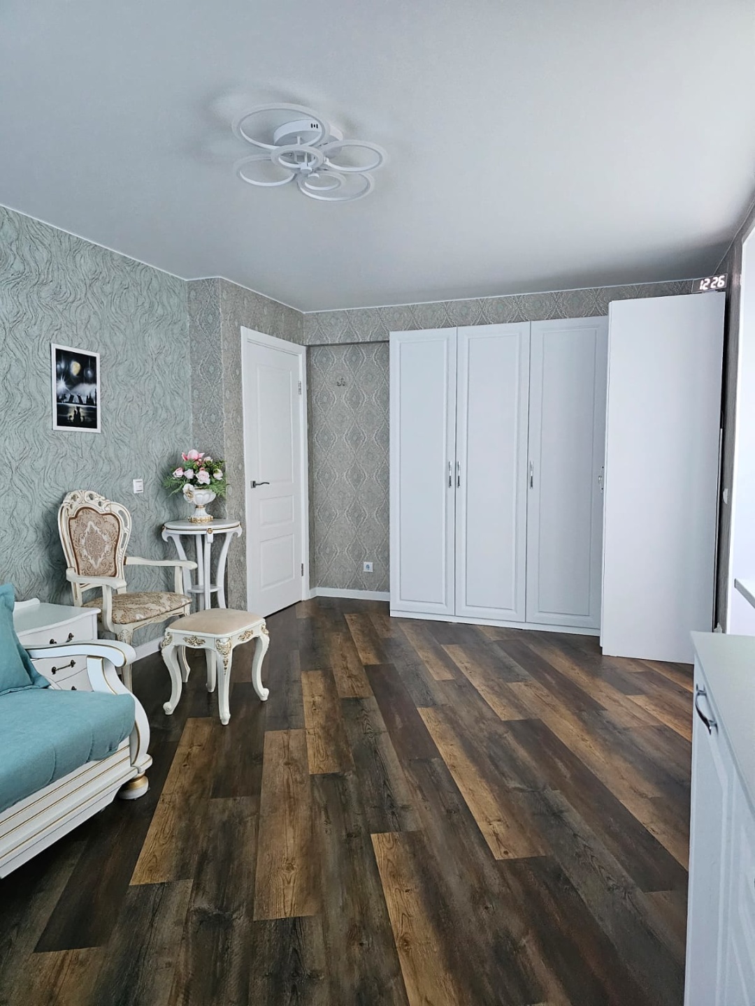 Новые батареи. На лоджии ламинат морозоустойчивый, шкафы встроенные на заказ. В квартире ламинат кварц винил везде.